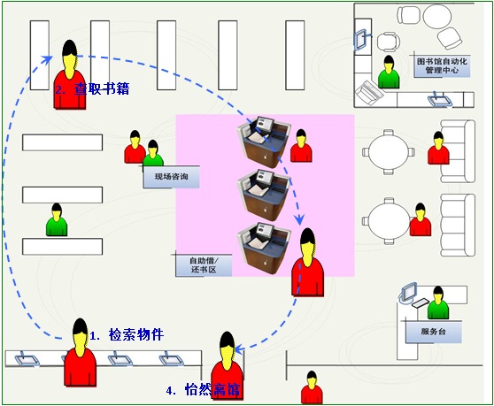 图书馆使用自助借还书系统的流程图: