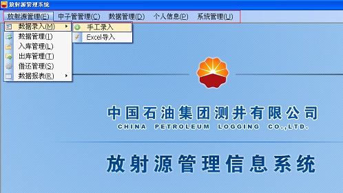 进入系统后,点击菜单“放射源管理”——》“数据录入”——》“手工录入”