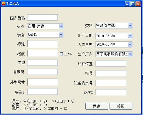 当如入完成各项后,点击保存按钮将该放射源信息保存到系统中。
