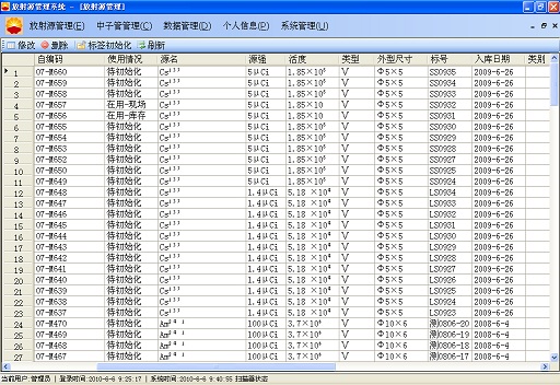 数据管理实现对放射源信息的维护功能,通过放射源管理实现放射源信息修改、删除和标签初始化工作。