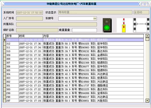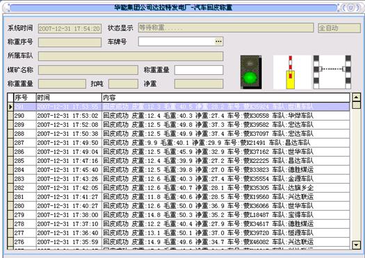 系统实现的主要功能包括:入厂排序、重车过重、回皮称重、现场数据查询、报警信息查询、异常信息查询、进煤情况分析、采样管理、采样数据管理、采样数据统计、煤厂数据管理、锁车解锁查询、汽车煤退货审核、回皮车辆统计、来煤数据查询、解锁锁车管理、合同车辆拉运情况查询、实时监控、车辆变更信息查询等。